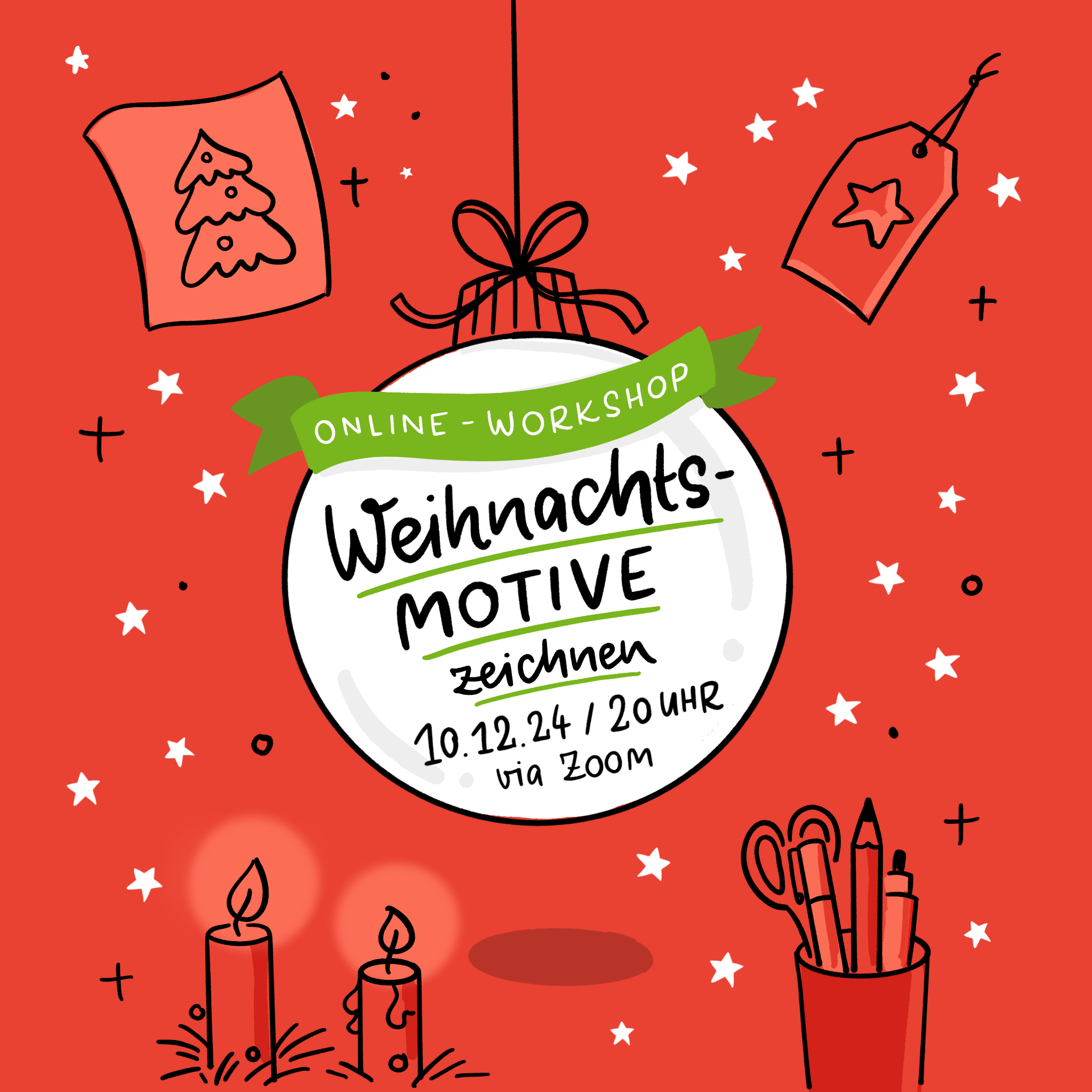 Hoho, am 10.12.2024 um 20 Uhr ist es soweit! Wir zeichnen zusammen Weihnachtsmotive, Weihnachtsfiguren und Weihnachtskarten