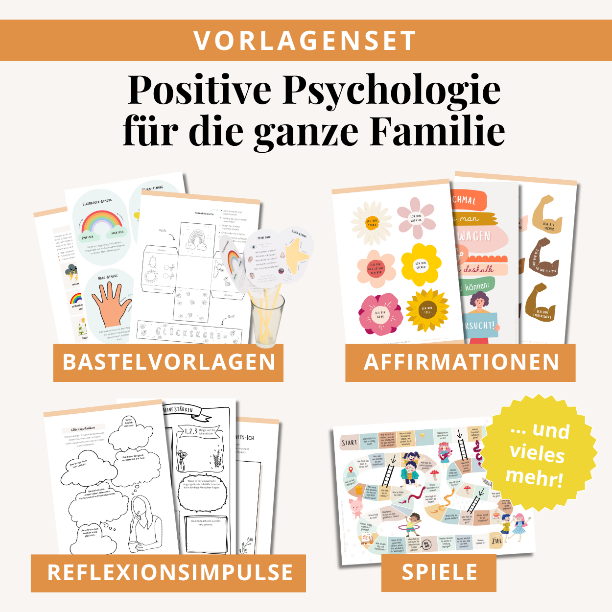 Achtsamkeit, Träume, Growth Mindset, Glück einladen & verteilen, Macht (guter) Gefühle, Stärken & Selbstwertgefühl - direkt downloadbare PDF-Dateien im praktischen A4-Format