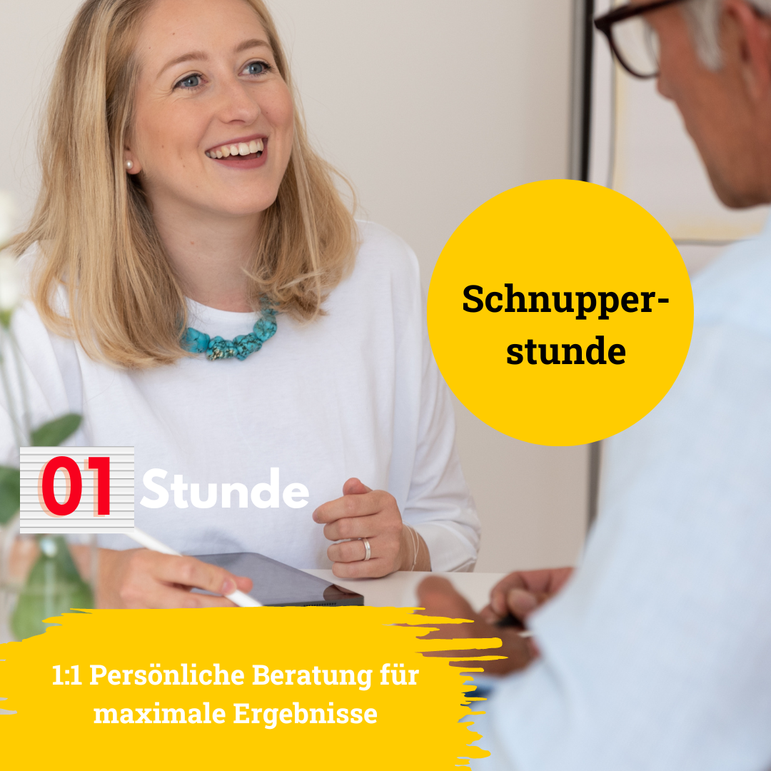 Eine Einzelstunde Beratung kostet als Schnupperstunde: 150,- € inkl. MwSt.