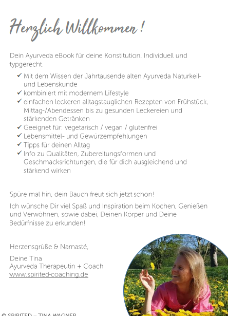 Dein typgerechtes eBook für die Kapha Konstitution mit Empfehlungen zur Stärkung und Balance.