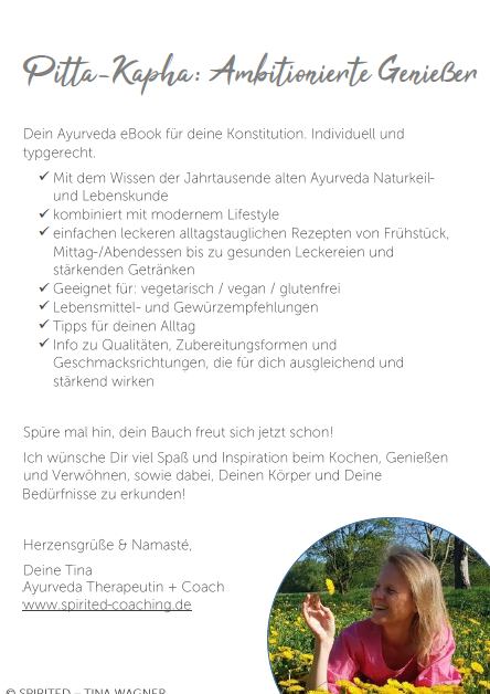Dein typgerechtes eBook für die Pitta-Kapha Konstitution mit Empfehlungen zur Stärkung und Balance.