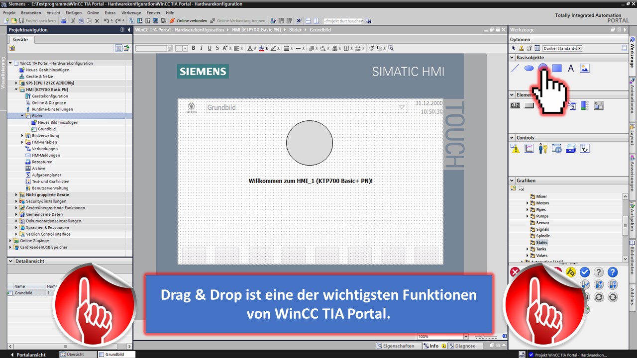 In diesem Kurs lernst du das Visualisieren von Siemens Bediengeräten (HMI) mit der Software WinCC TIA Portal und WinCC Unified.
