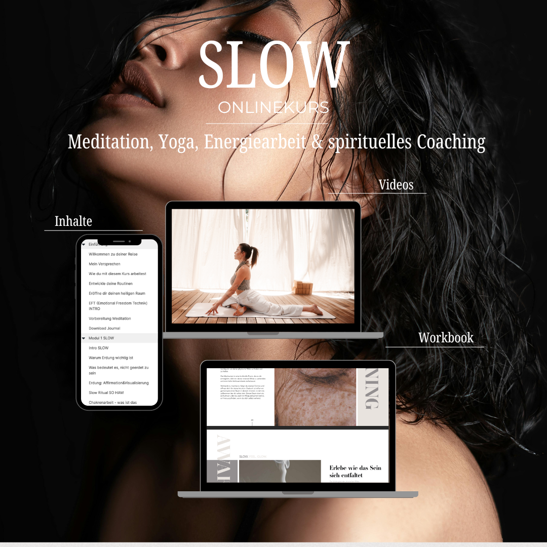 Mit SLOW findest du genau diesen Weg. Dieser Online-Kurs wurde speziell für Frauen entwickelt, die Meditation, Yoga und Selbstreflexion sanft in ihren Alltag integrieren möchten – ohne Druck, ohne Perfektionismus, in ihrem eigenen Tempo.