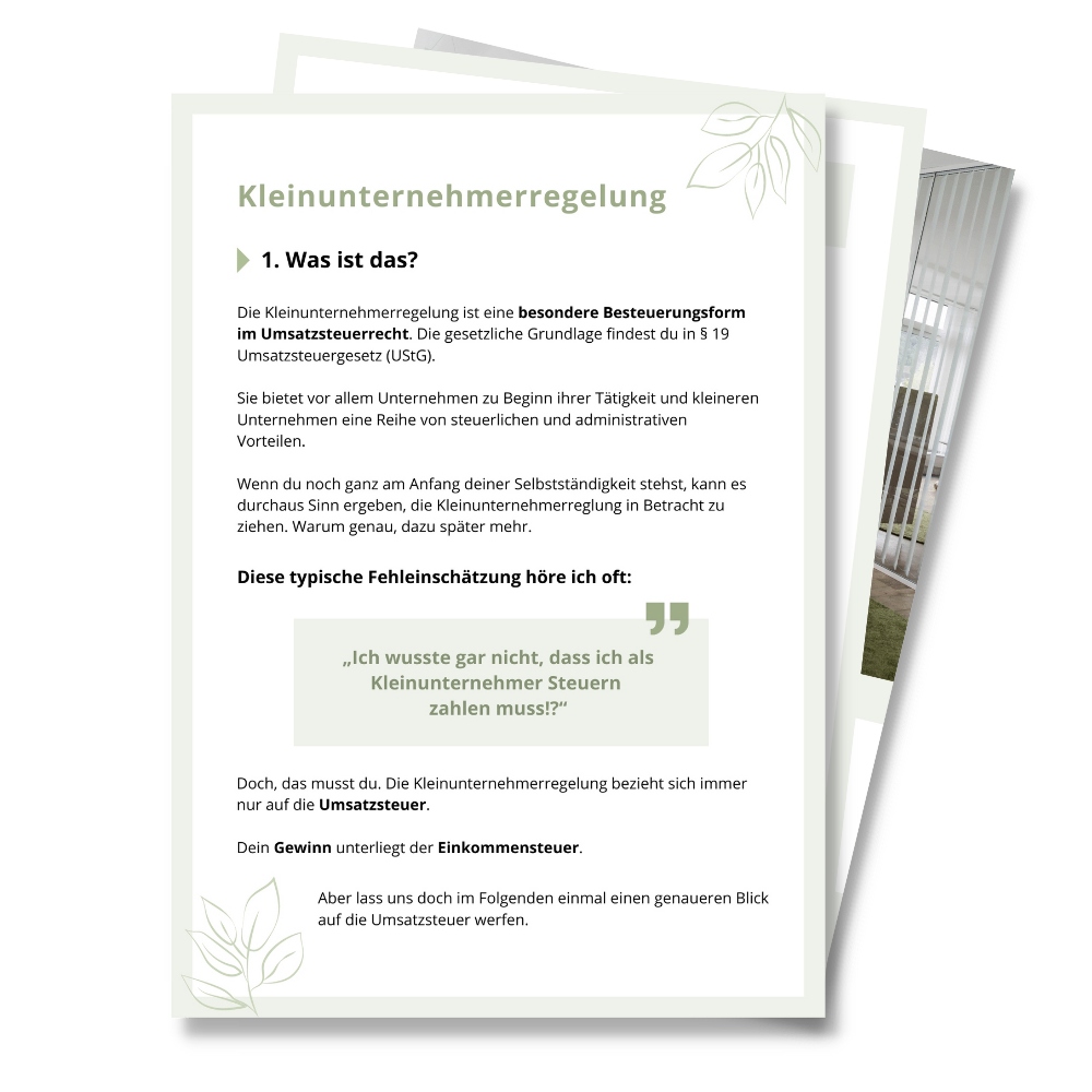 1x PDF-Datei (.pdf) „Kleinunternehmerregelung – Vorteile & Voraussetzungen“ (16 Seiten)