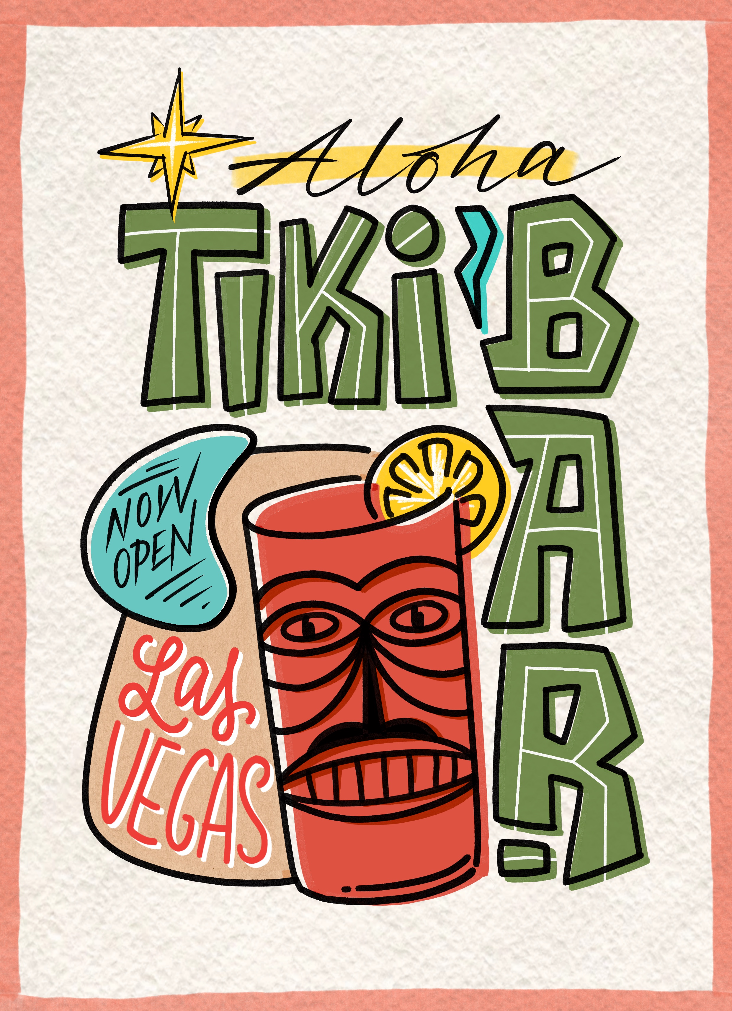 • illustrative Blockbuchstaben im Aloha-Style