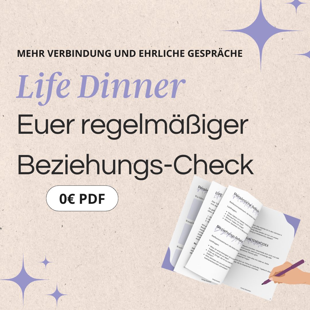Das "Life Dinner" ist wie ein monatlicher Beziehungs-Check mit deinem Partner oder deiner Partnerin, das meine Beziehung und das meiner Coaching-Paare unglaublich verbessert hat.