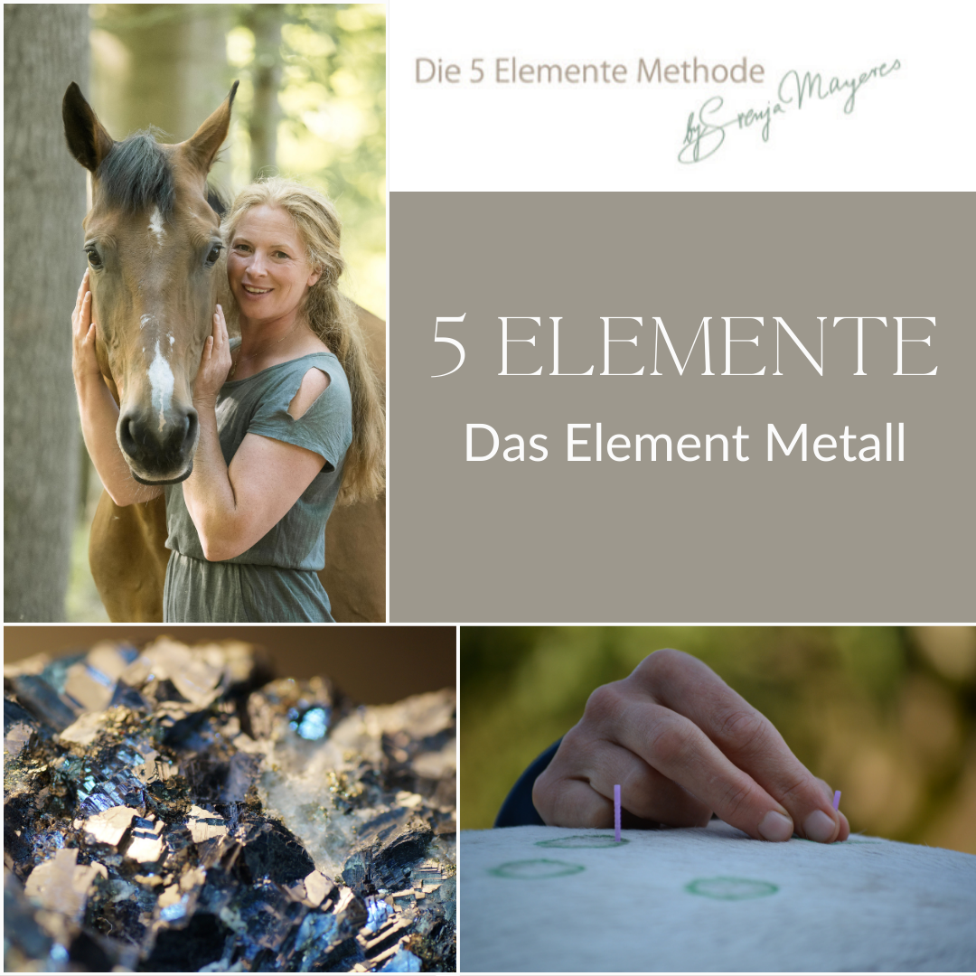 Im Zyklus der 5 Elemente steht die Metall für den Westen. Erkrankungen, die mit diesem Element einhergehen, sind u.a. Haut- und Atemwegs- und Darmprobleme. Mit der Unterstützung dieses Elements hilfst du deinem Pferd bei entsprechenden Symptomen und Vorerkrankungen.