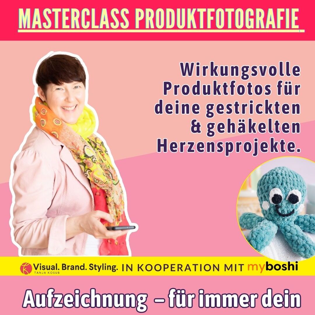 Maschen, Materialien und Strukturen kommen erst mit dem richtigen Licht, der passenden Perspektive und einem liebevollen Styling so richtig zur Geltung – und genau darum geht’s in dieser Masterclass. Du bekommst praktische Tipps, die du direkt umsetzen kannst – ganz ohne aufwendiges Equipment.