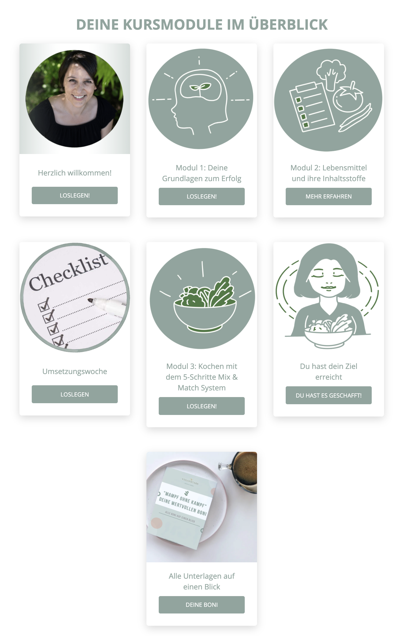 Im dritten Teil von "Mampf ohne Kampf" lernst du mein erprobtes 5-Schritte Mix & Match System kennen. Ein System, mit dem ich persönlich in meinem Kochalltag arbeite und das sich laut meinen Blutwerten über die Jahre bewährt hat. Mit dem System stellen wir in 9 Kochvideos gemeinsam sicher, dass das erlernte Nährstoffwissen auch praktikabel und unkompliziert in deinem stressigen Alltag umsetzbar ist - und das ohne dir ständig den Kopf zu zerbrechen.