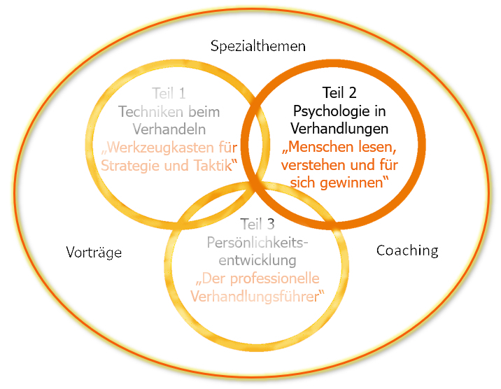 Die Teilnehmer:innen lernen in zwei Tagen, sich auf verschiedene Menschen einzustellen und auf der Beziehungsebene zu verhandeln, um Sympathie, Respekt und Wertschätzung zu erlangen. Fähigkeiten wie Empathie und Charisma sind kein Mythos sondern erlernbar. Dazu werden neueste Erkenntnisse aus Psychologie und Neurowissenschaften auf Verhandlungssituationen übertragen.