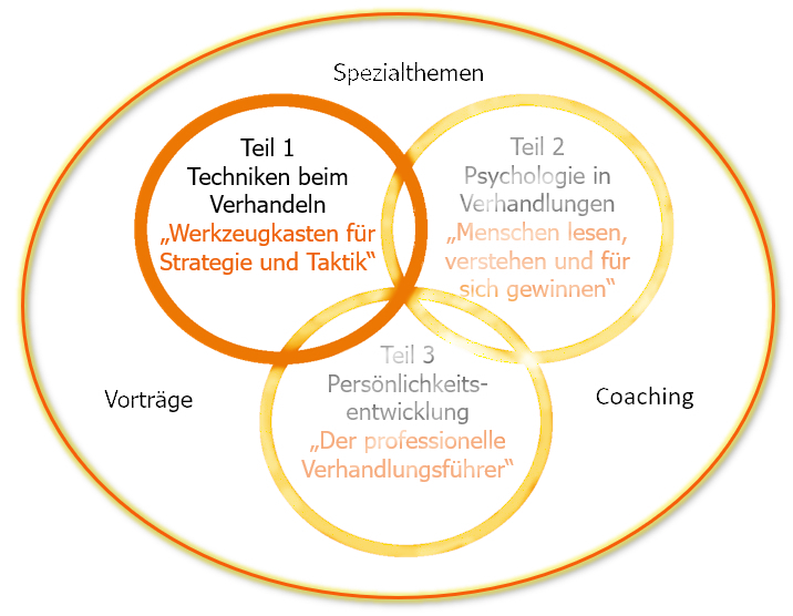 Die Teilnehmer:innen erwerben in zwei Tagen solides Grundlagenwissen, das sie in die Lage versetzt, jede Verhandlung erfolgreich zu führen. Dazu erhalten sie ihren Werkzeugkasten für den täglichen Gebrauch mit Anleitungen und Checklisten zur Vorbereitung und Durchführung von Verhandlungen. In Verhandlungssimulationen entwickeln und erproben sie unterschiedliche Strategien und deren taktische Umsetzung in konkreten Verhandlungssituationen.