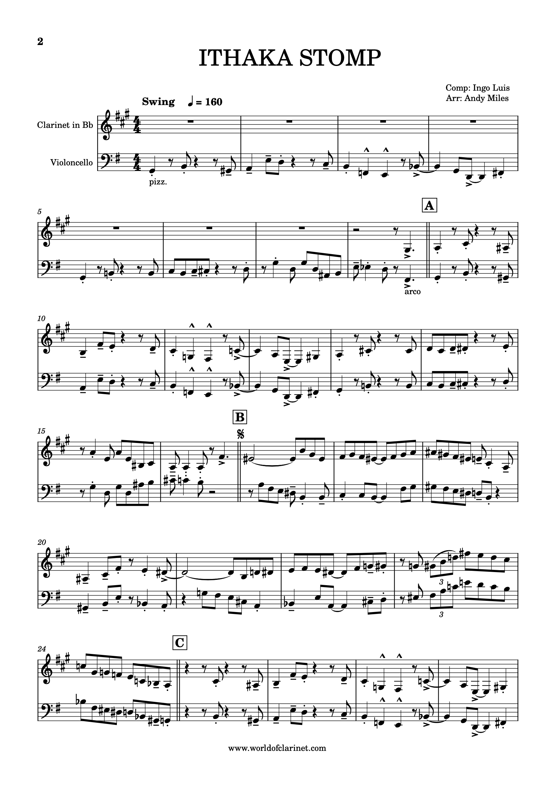 INGO LUIS - ITHAKA STOMP - Jazzy Piece for Clarinet & Cello