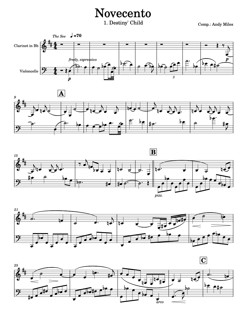 Miles Andy - Destiny's Child from Suite "Novecento" - Clarinet & Cello