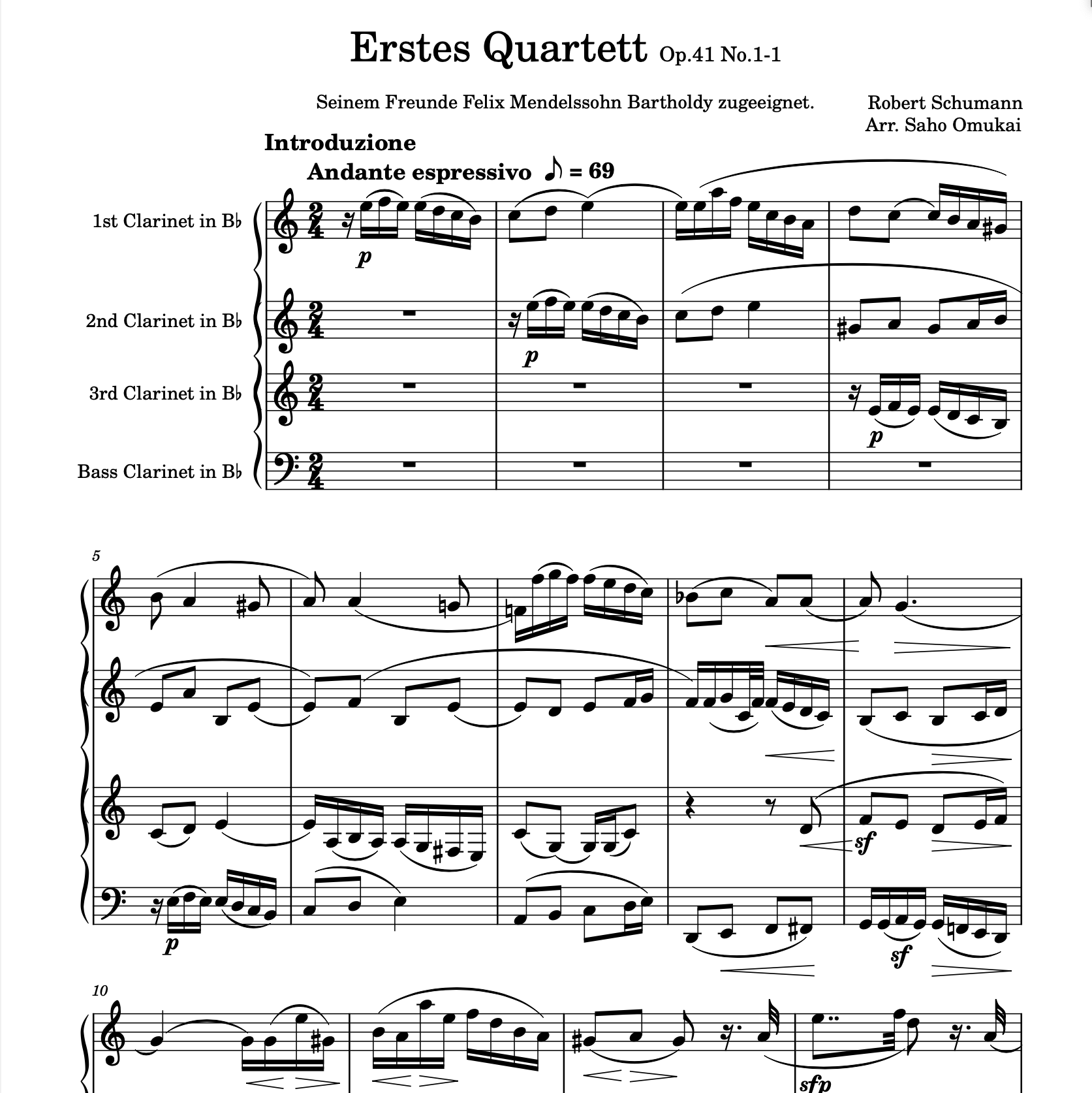 Schumann R. - Quartet Nr.1 op.41 - Introduktion & Allegro - for four Clarinets