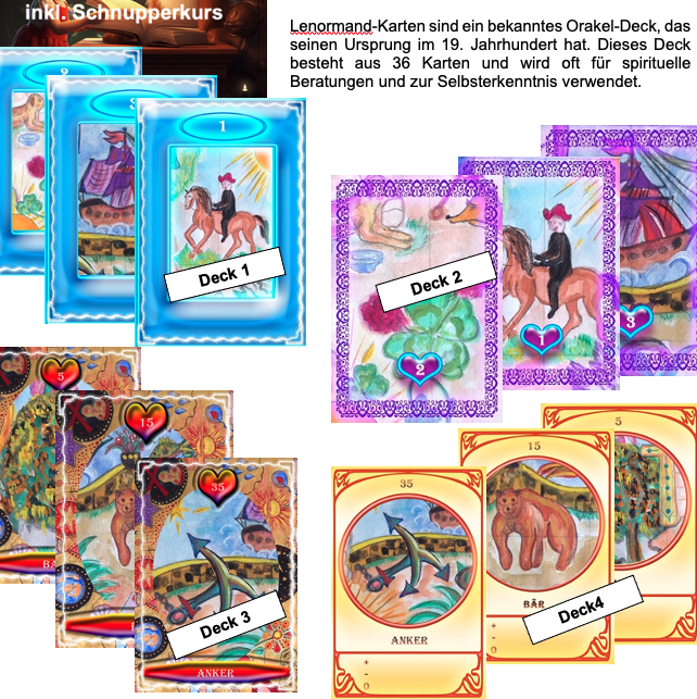 4 verschiedene Lenormandkarten-Decks als Sparpaket