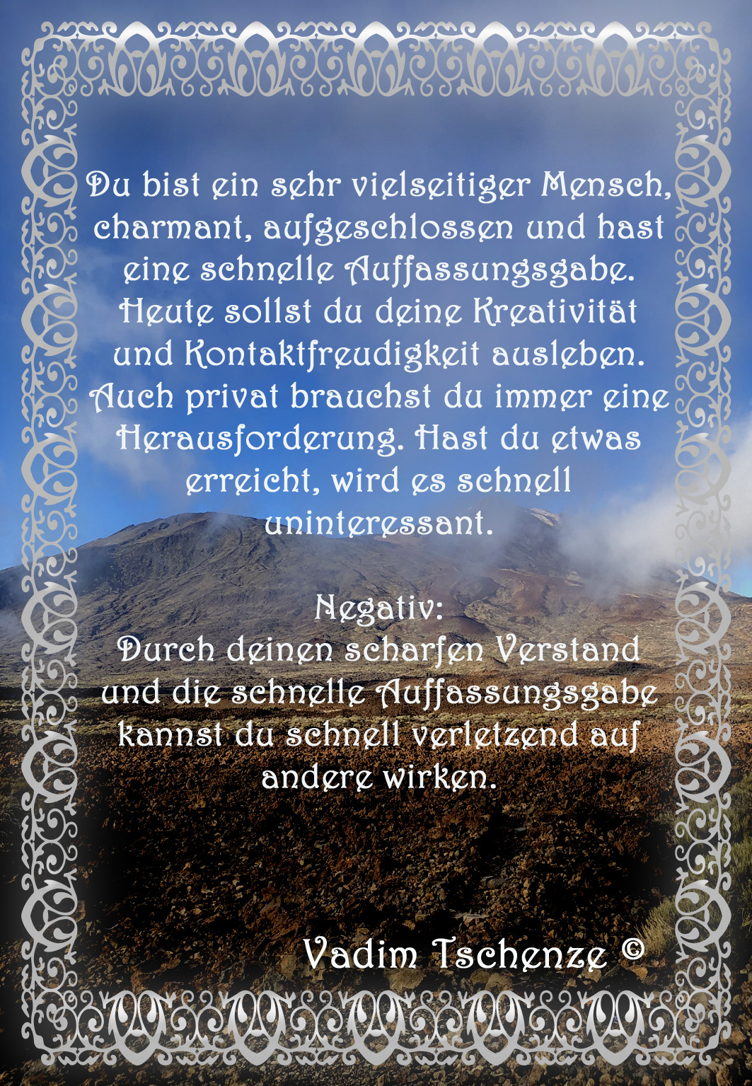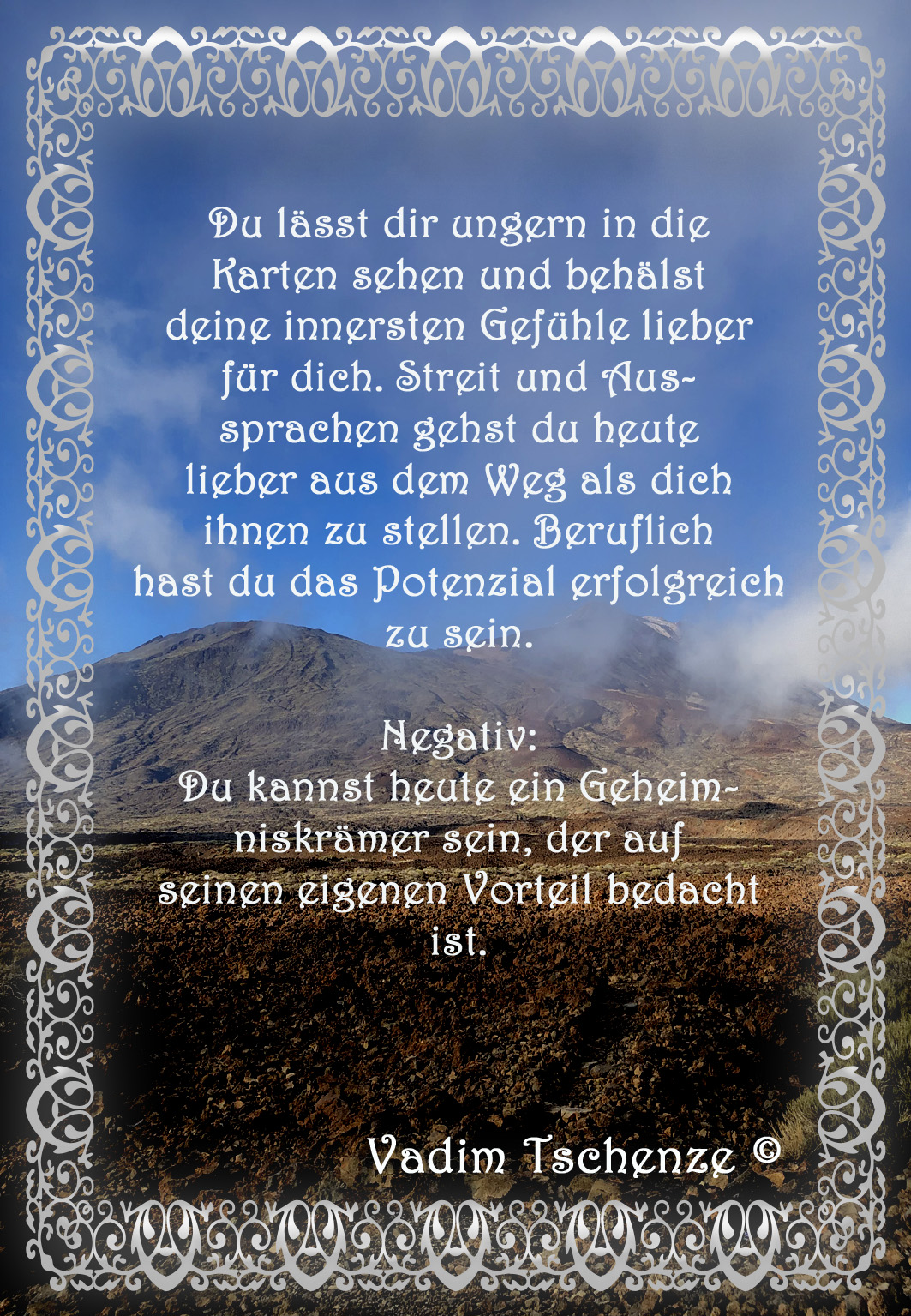 Die Aussagen in diesem Tagesorakel dienen als tägliche Wegweiser, um uns zu inspirieren, zu ermutigen und uns auf unserem Weg durch den Tag zu unterstützen.