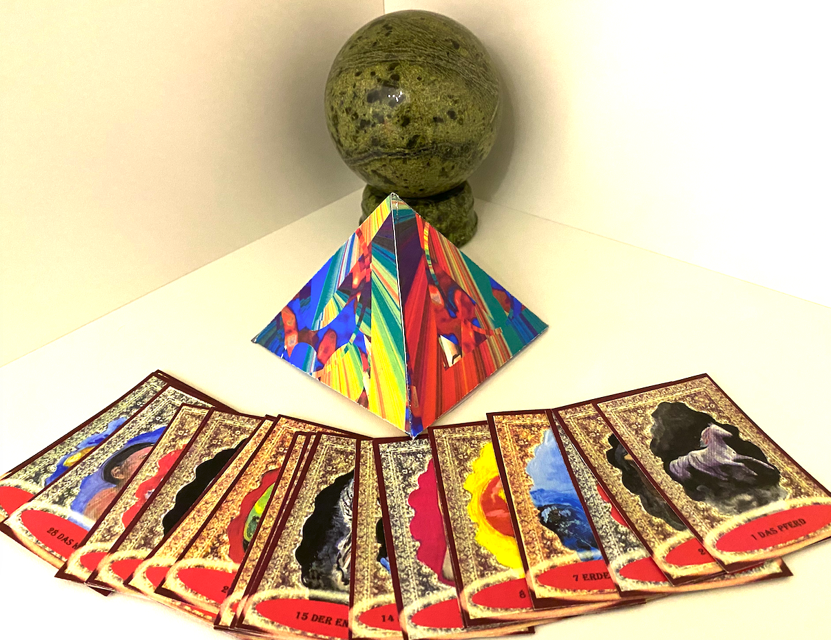 36 Karten nach russischer Tradition, 9x6 cm, PDF und JPGs, 42 Seiten Buch + Verpackung als Pyramide