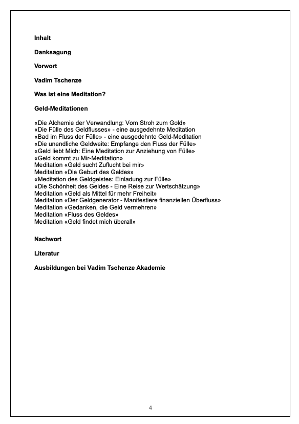 Möge dieses Buch dir dabei helfen, deine finanzielle Freiheit zu entfalten und deine innere Fülle zu erkennen. Ich begleite dich auf diesem Weg der Transformation und wünsche dir von Herzen, dass diese Meditationen zu einem wertvollen Begleiter in deinem Leben werden.