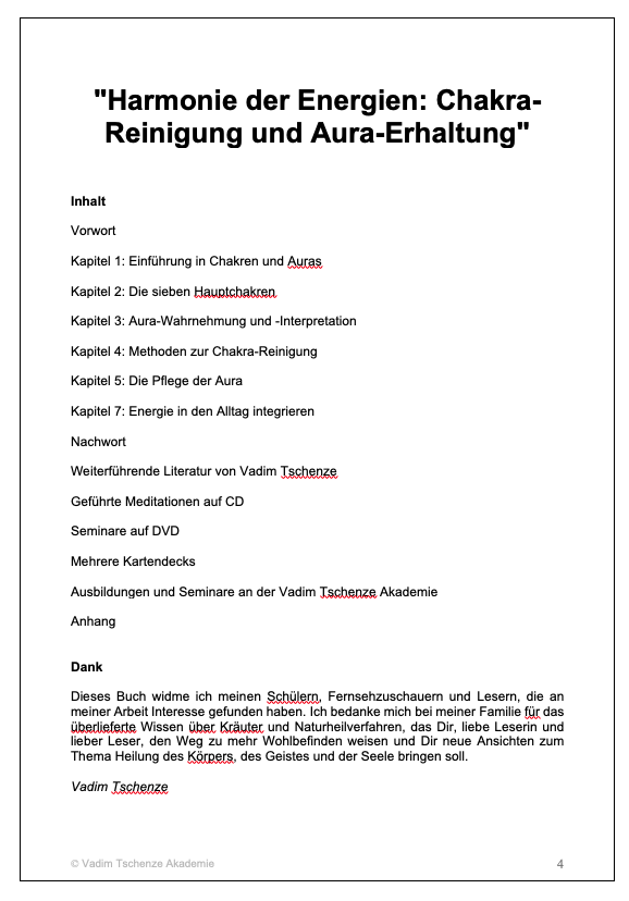 "Harmonie der Energien: Chakra-Reinigung und Aura-Erhaltung" bietet einen umfassenden Einblick in die Welt der Chakren und Auras. Es lädt dazu ein, sich selbst besser kennenzulernen, die eigene Energie zu steuern und ein Leben voller Ausgeglichenheit und innerem Frieden zu führen. Möge dieses Buch dir dabei helfen, deine Energiezentren zu entfesseln und die Schönheit und Kraft der Aura zu entdecken.