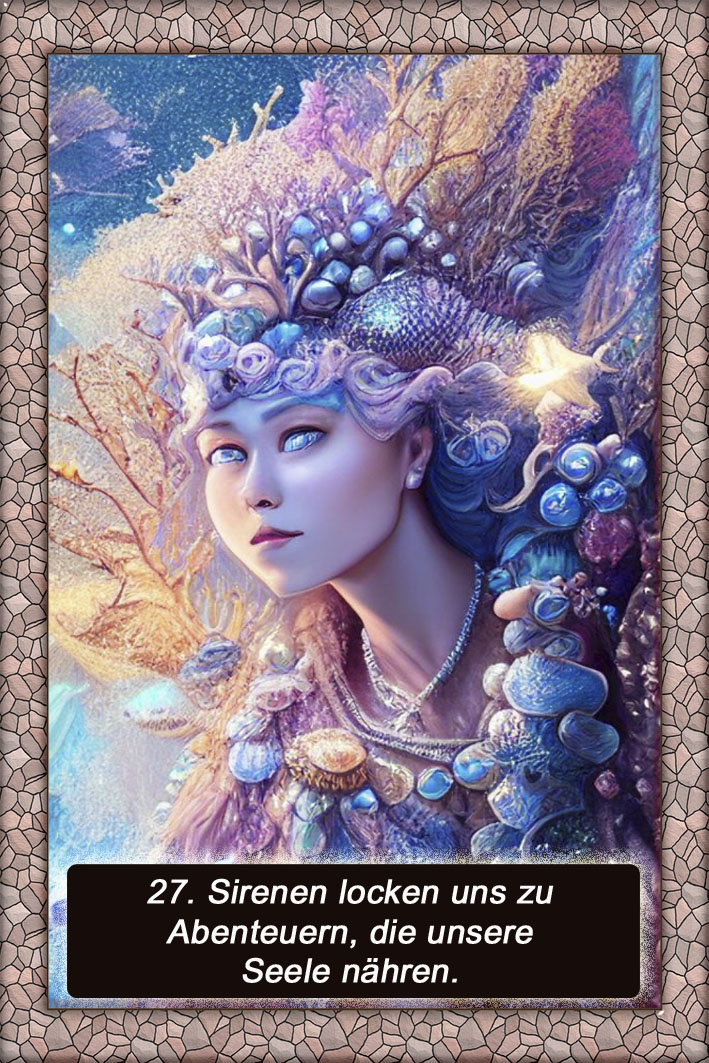 In diesem faszinierenden Universum werden wir gemeinsam eintauchen in die Welt der Zauberer und Sirenen, in der sich Magie, Mythen und verborgene Einsichten miteinander vereinen. Diese Karten sind mehr als nur Symbole auf Papier – sie sind Spiegel in die Seele, Schlüssel zu den Tiefen deiner Intuition und Führer auf deinem persönlichen Weg der Entdeckung. Sie laden dich ein, deine Sinne zu schärfen, die Schleier zwischen den Welten zu lüften und die Botschaften der Zauberer und Sirenen zu empfangen.